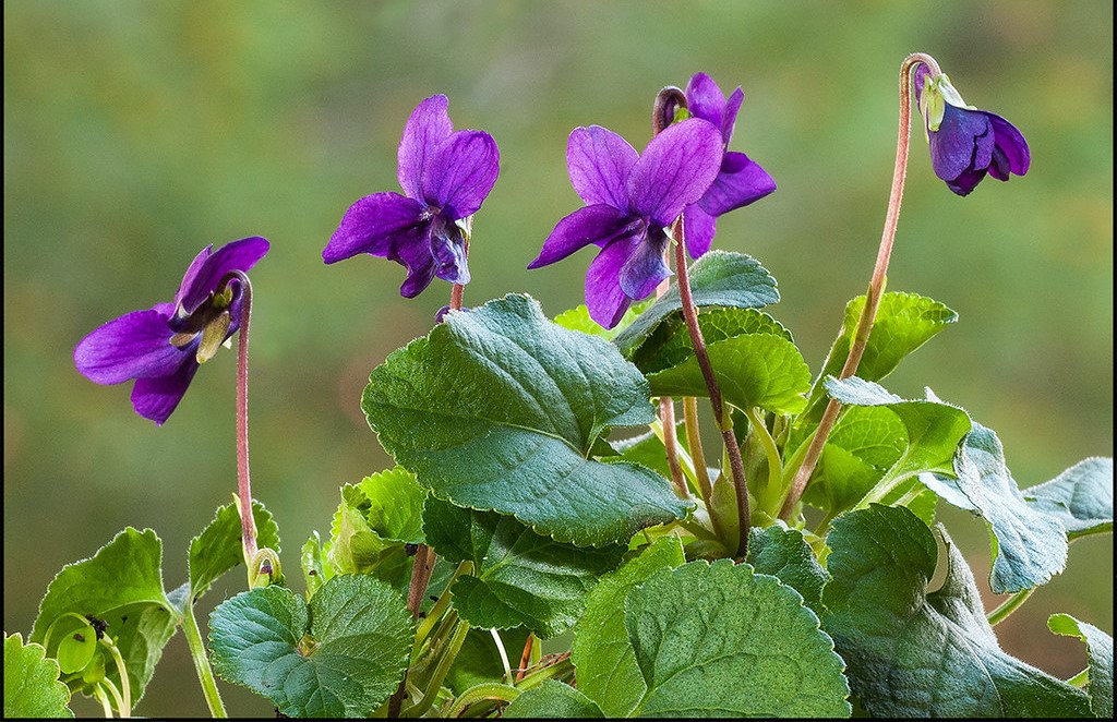 Viola odorata L.: la morfologia della Viola odorata è a forma di cuore, le sue foglie sono semplici dentate disposte alla base, ceppo erbaceo perenne corto, a volte ramificato, annodato con resti di vecchie foglie, steli e stipole, e generalmente emette striscianti corridori o marze. La pianta ha un fusto sotterraneo spesso e squamoso, con corridori radicanti. Possiede foglie a forma di cuore con bordi smerlati o leggermente seghettati di colore verde scuro, ciuffi radicali, largamente cordati, rotondi nella parte superiore, lisci o talvolta lanuginosi nella parte inferiore, e crescono in una rosetta alla base della pianta, mentre i fiori sono viola intenso, blu, rosati o bianco giallastri.