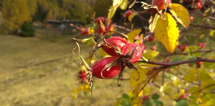 The true fruit of the Rosehip is what is usually referred to as a seed. The false fruit, whose scientific name is rosehip, during maturation appears as an ovoid, red and smooth berry, surmounted by withered sepals and containing numerous “seeds” (the true fruits!) Which are oval achenes covered with stiff hairs .